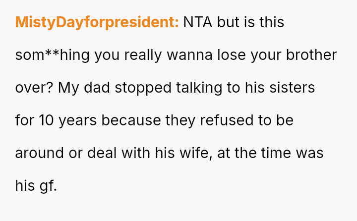 Caught between loyalty to his brother and the desire for peace, the narrator grapples with feelings of irritation and helplessness.