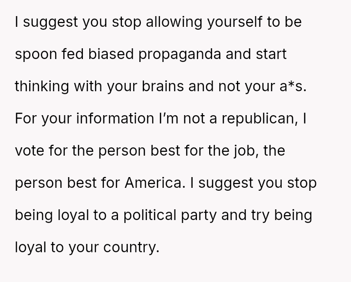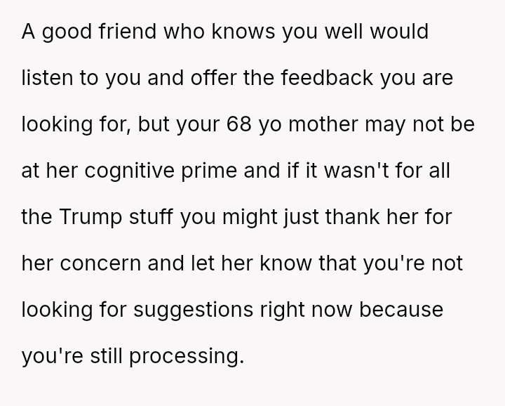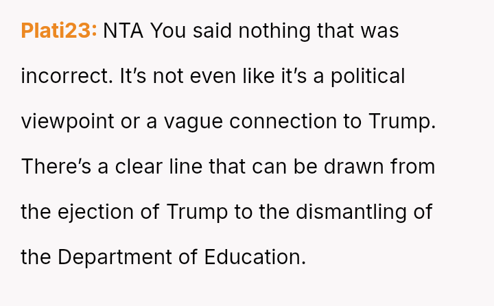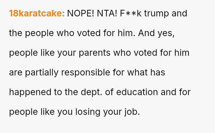 The core question remains whether the OP was justified in using the mother's political choice as the basis for their outburst during a moment of professional crisis, or if this const*tutes an unfair emotional burden placed upon a familial relationship over differing political beliefs.