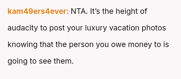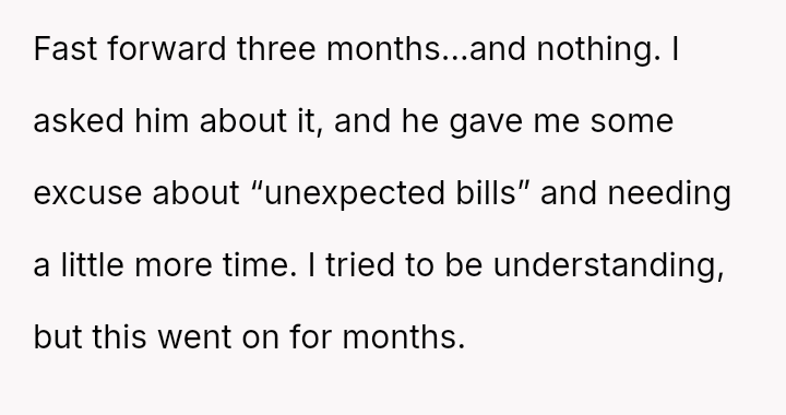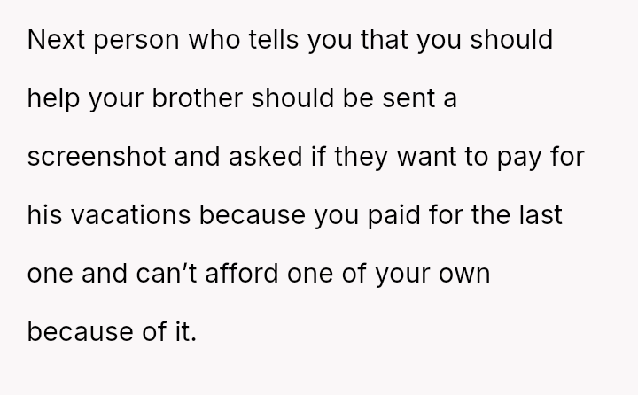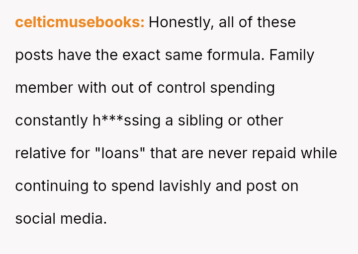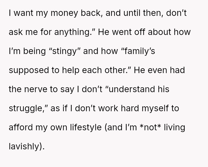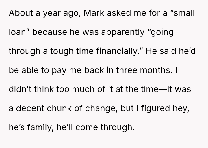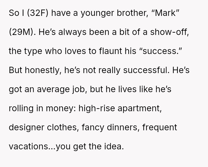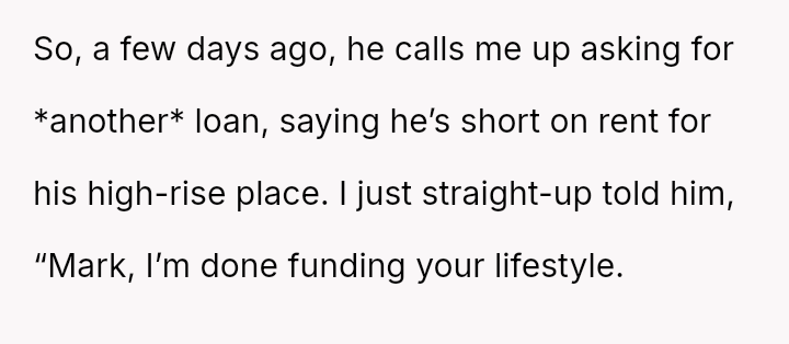 The Original Poster (OP) reached a breaking point after patiently lending money to her brother, Mark, who failed to repay the debt while continuing to fund an extravagant lifestyle.
