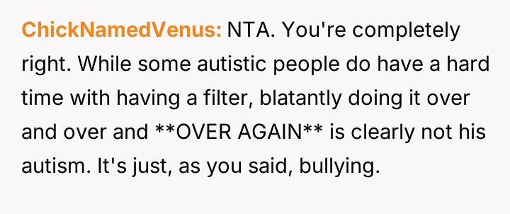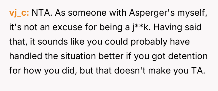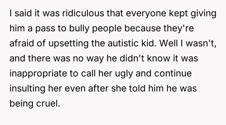 AITA for not apologizing to a high functioning autistic bully after calling him out?