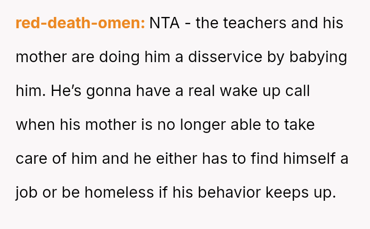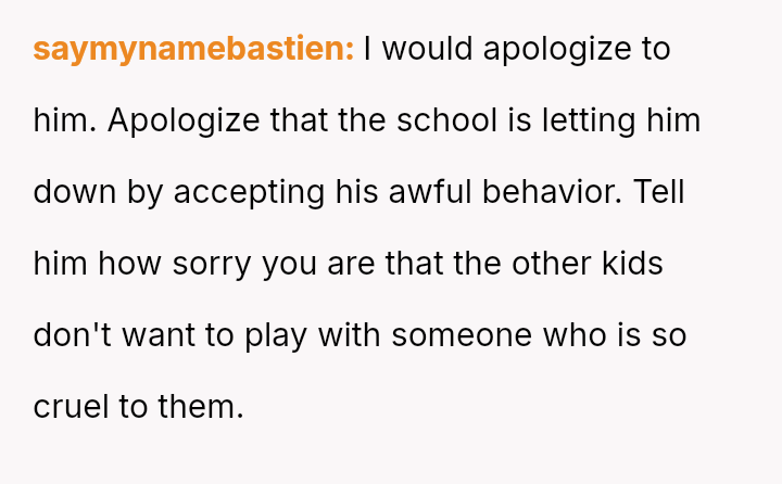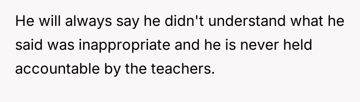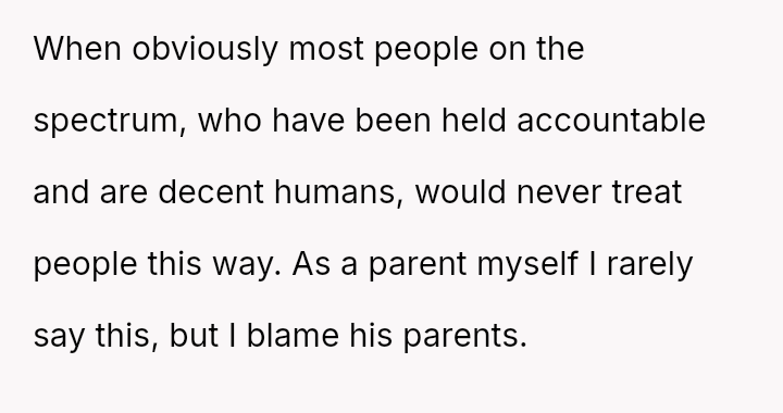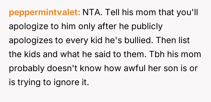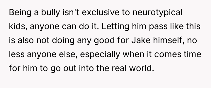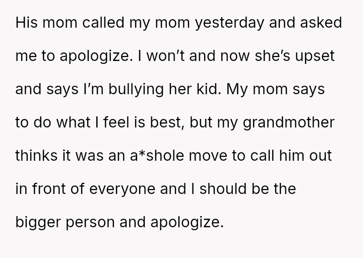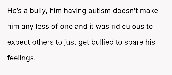 He stands firm in his belief that accountability for bullying should not be waived due to a disability, while others, including the bully's mother and his grandmother, feel his public confrontation escalated the situation unnecessarily and demand an apology.