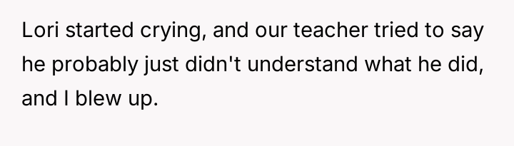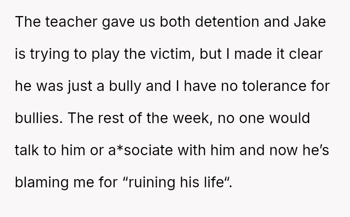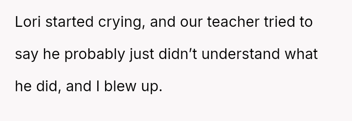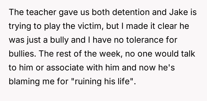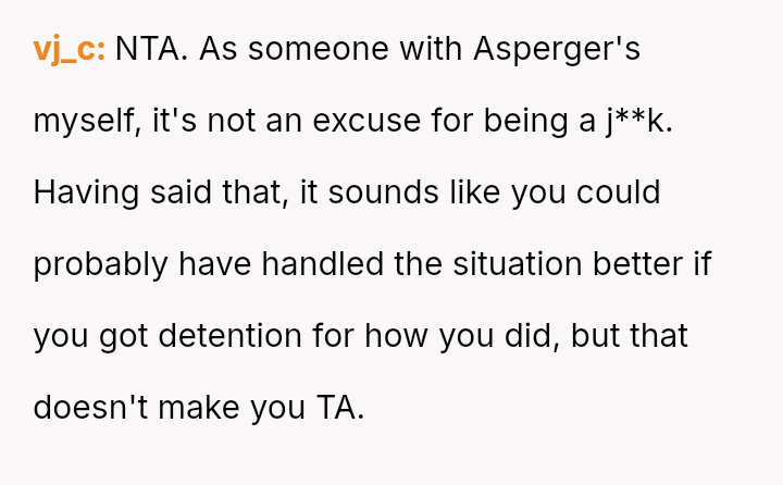 The original poster (OP) experienced a strong conflict between his desire to defend a vulnerable friend from severe verbal a**se and the resulting social and disciplinary backlash he received.