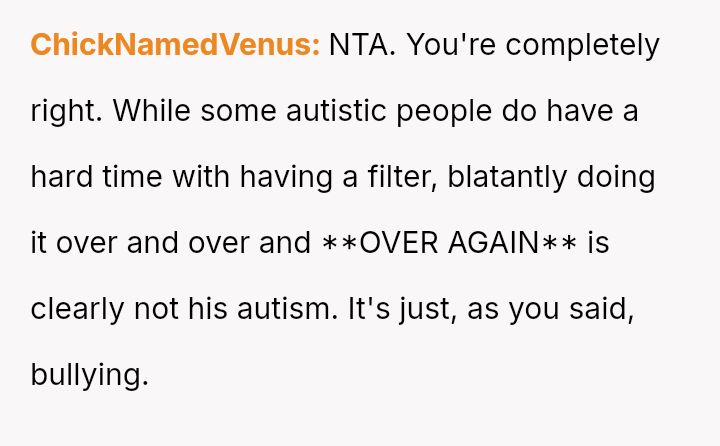 Given the OP's refusal to apologize against external pressure, the central question remains: When faced with clear, intentional cruelty, is standing up publicly for a victim more important than adhering to social conventions that prioritize avoiding conflict with a person known to have special needs?