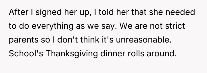 The parent faced a situation where their daughter's conditional agreement regarding behavior was immediately broken by a significant act of defiance during a school event, leading to the withdrawal from the graduation trip.