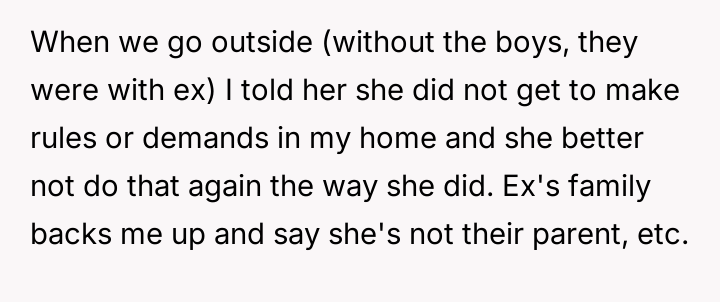 AITA for telling my kids stepmother she doesn't get to make rules for my home in front of my former ILs?