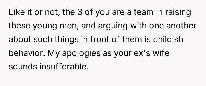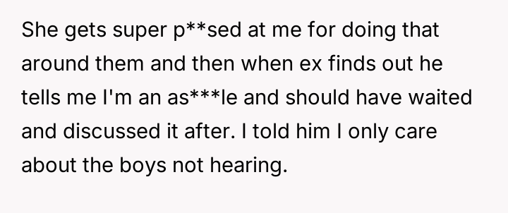 Is the OP justified in immediately confronting the ex-wife publicly about setting rules on their parenting time to protect the children from the conflict, or should the OP have waited to address the issue privately with the ex-husband to maintain a less volatile co-parenting relationship?