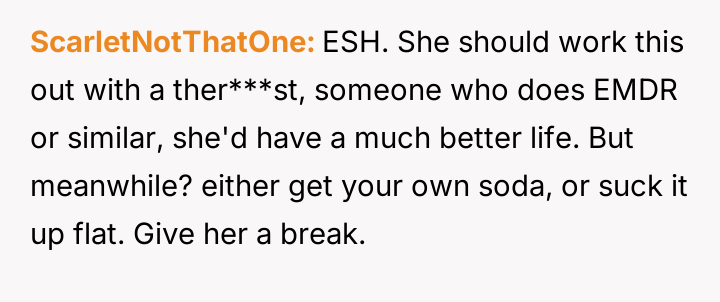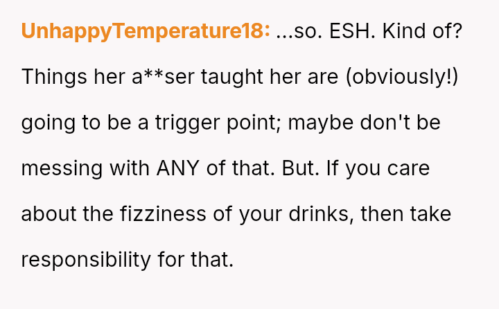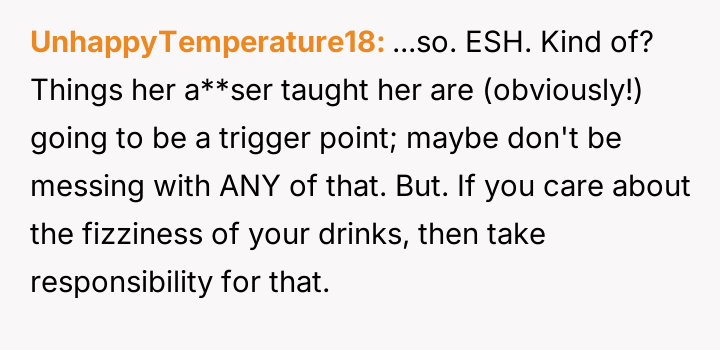 The Original Poster (OP) is facing a conflict where a small, seemingly logical request about preserving a drink's quality has triggered a significant emotional reaction rooted in past trauma.