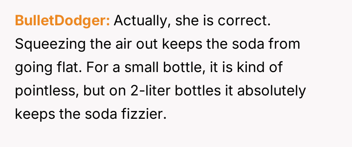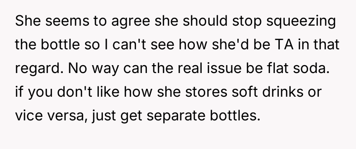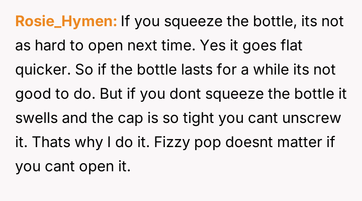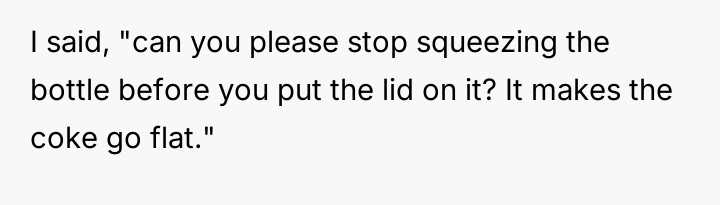 AITA for asking my fiancee to stop squeezing the bottle of coke before she puts the lid on
