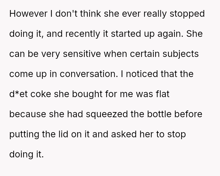 The simple act of squeezing a d*et coke bottle becomes a silent battlefield—a subtle reminder of the control once imposed upon her.