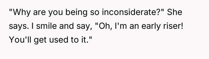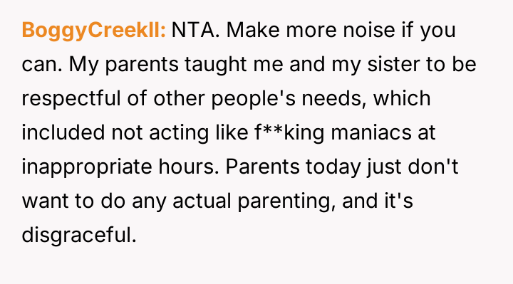 Should the OP have continued direct, non-confrontational communication, or was the calculated noise response a necessary, albeit aggressive, step to es**blish boundaries?