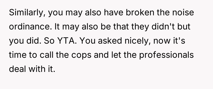 The core debate is whether the OP was justified in using reciprocal noise pollution as a means of negotiation, or if this behavior const*tutes being the primary problem.