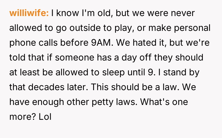 The original poster (OP) works late hours, which results in a need to sleep in every morning.