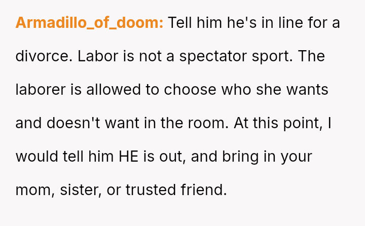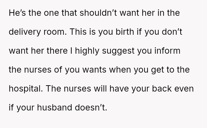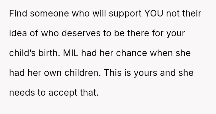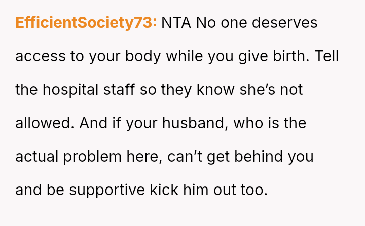 Is the poster justified in prioritizing her mental well-being and setting an absolute boundary regarding her mother-in-law's presence during labor and delivery, or is the husband correct that this action unfairly punishes the grandmother and denies her a significant family moment?