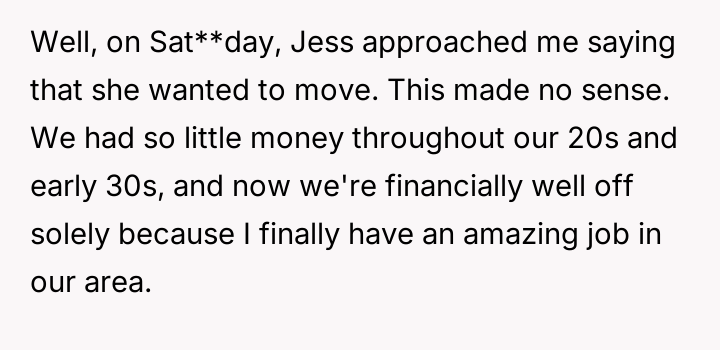 When she suddenly expressed a wish to move, it was more than just a change of scenery—it was a plea for som**hing beyond financial comfort, a desperate reach for freedom from the tangled web of their unraveling reality.