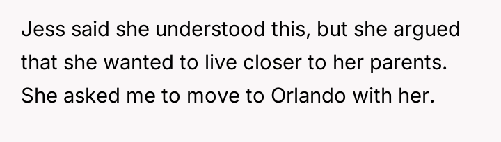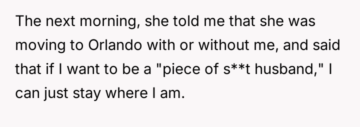 Given the wife's demonstrated pattern of prioritizing Disney trips and presenting dubious reasons for a major life change, the central question becomes: Should the OP prioritize his financial s**bility and current life, or accommodate a partner whose core motivations appear rooted in persistent, potentially manipulative desires contradicting shared financial goals?