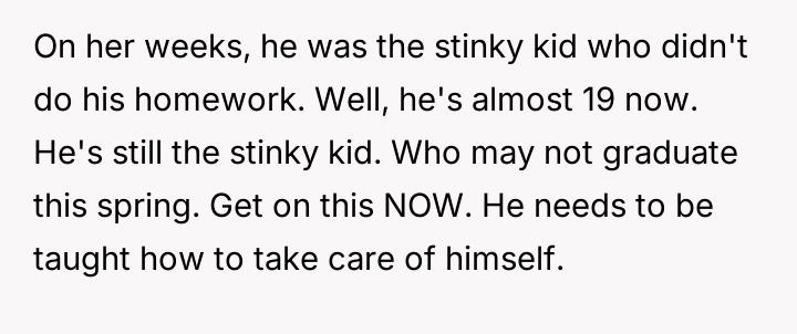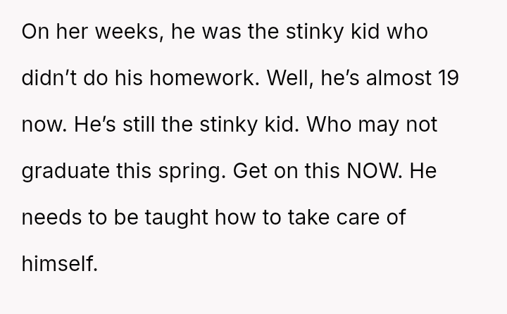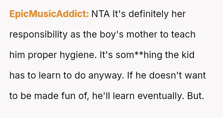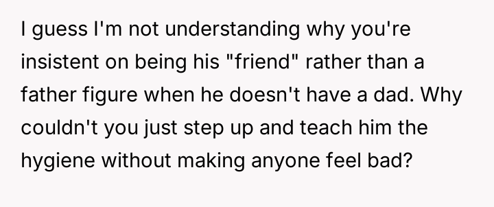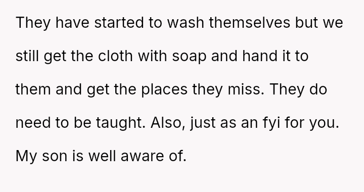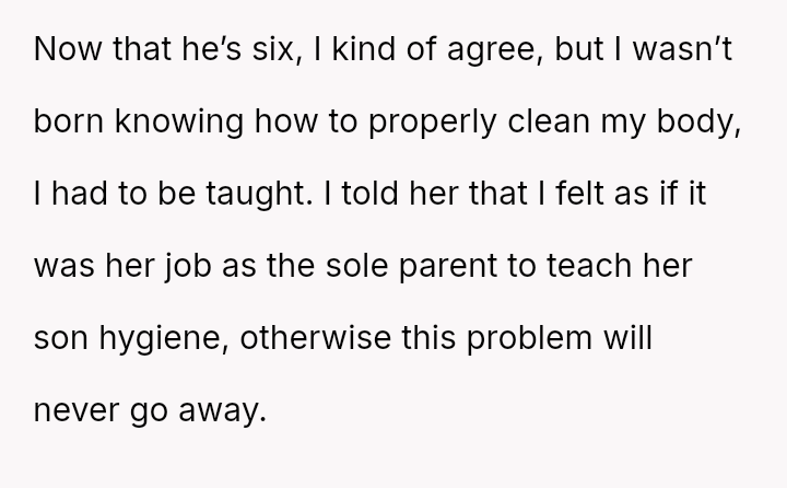 The core question remains: How should co-parents or partners address sensitive issues like a child's personal hygiene when one partner feels the other is failing in a core teaching duty?