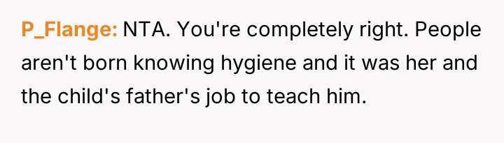 Was the OP justified in prioritizing the child's immediate hygiene correction, even if it meant criticizing the mother's parenting approach, or did his delivery v***ate the necessary respect for her role as the primary caregiver?