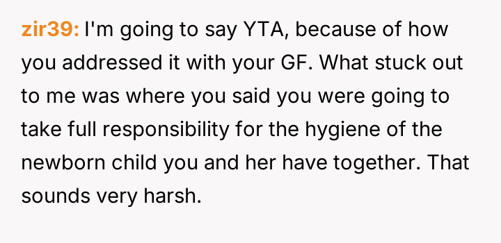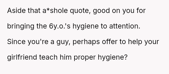 The OP acted directly based on an observed issue (the child smelling bad) and voiced his concern forcefully, linking it to the girlfriend's role as the sole parent.