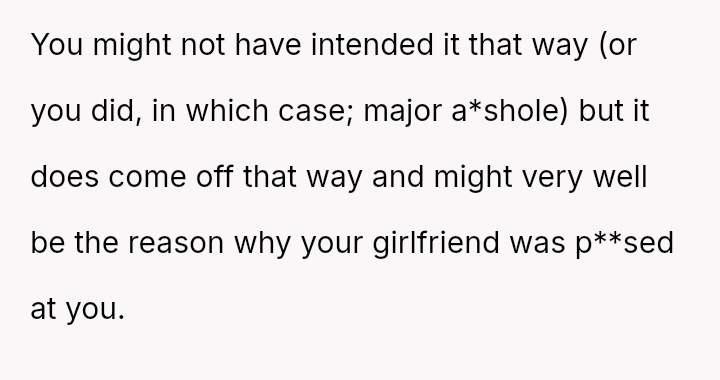 This direct approach caused significant emotional distress and anger in his girlfriend, highlighting a clash between the OP's belief that direct instruction is necessary and the girlfriend's emotional reaction to how that criticism was delivered.