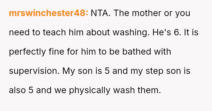 The original poster (OP) is facing a significant conflict rooted in differing views on parental responsibility and teaching hygiene to a six-year-old stepchild.
