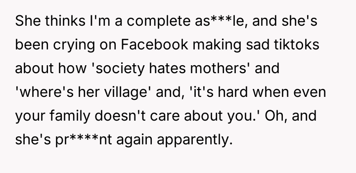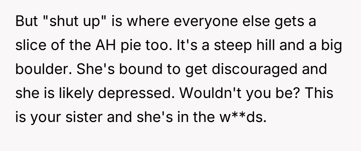 Now the sister is upset and posting publicly about feeling unsupported by family, and the OP wonders if she was wrong for her reaction.
