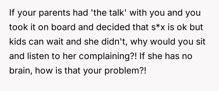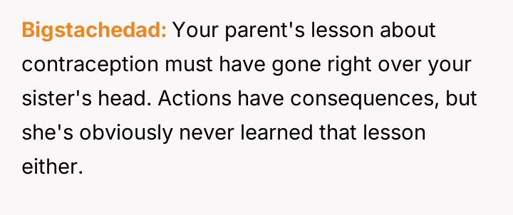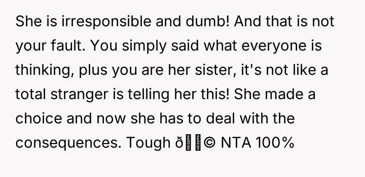 The central question is whether the OP's blunt and severe criticism regarding her sister's life decisions was an acceptable response to repeated emotional burden, or if it crossed the line into cruelty, especially given the sister's current distress and subsequent pregnancy. Was the OP justified in prioritizing her own emotional peace by delivering such a harsh truth?