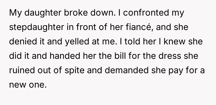 AITA for demanding my stepdaughter to pay for my daughter's wedding dress that she ruined?