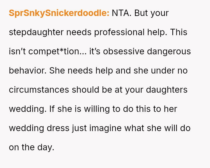 The mother is deeply distressed, positioned between supporting her biological daughter's happiness and managing the extreme, destructive behavior of her compet*tive stepdaughter.