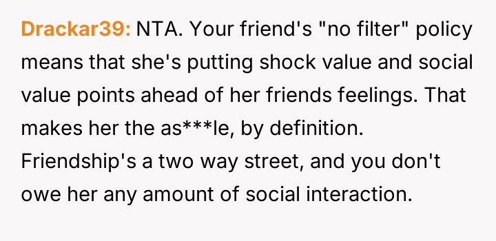 AITA for telling my friend that if she kept up her "no filter" persona, we'd stop inviting her to hang out?