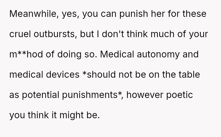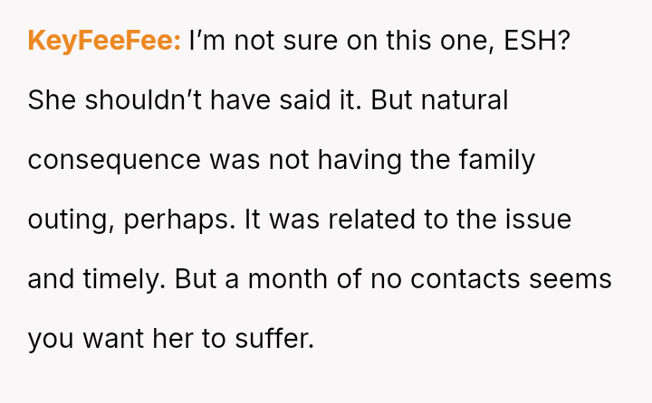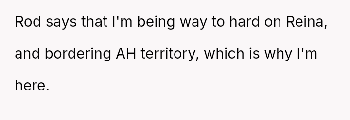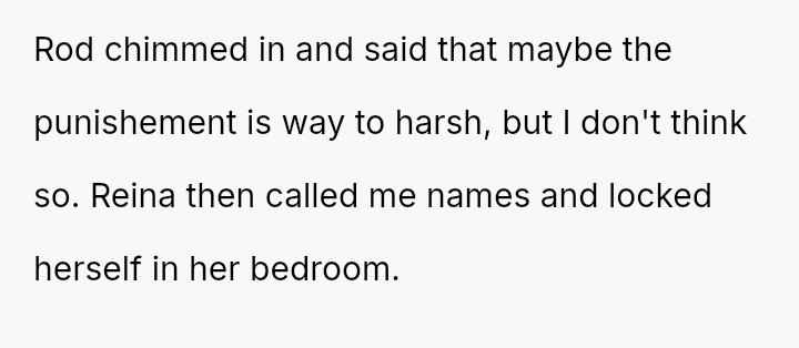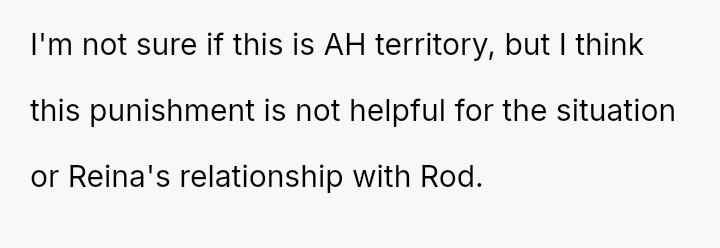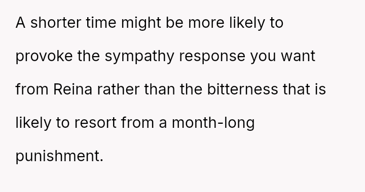 The OP responded by imposing a month-long ban on Reina's contacts, a punishment that Reina views as excessively harsh, especially with social events pending.