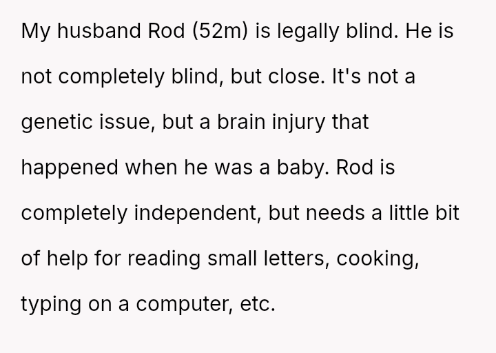 Rod’s world is veiled in shadows, yet his spirit shines brightly as a devoted husband and father.