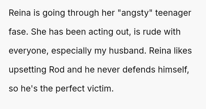 The original poster (OP) acted decisively to defend her husband against a deeply hurtful comment made by her teenage daughter, Reina.