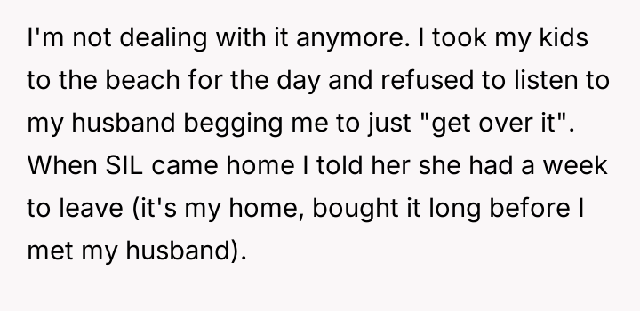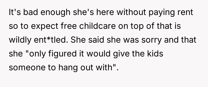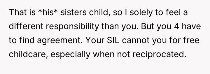 The original poster (OP) reached a breaking point due to the constant, one-sided demands for free childcare from their sister-in-law (SIL) and the resulting lack of respect within their own home.