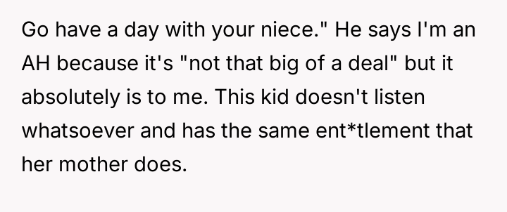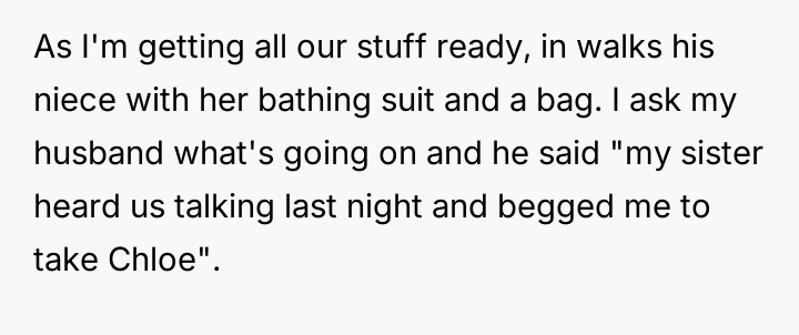 AITA for refusing to go on a "family outing" when my husband agreed to take his niece?