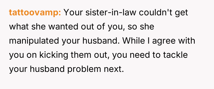 The central conflict involves the OP asserting necessary personal boundaries against the SIL's ent*tled expectations of free services, which escalated into the OP setting a firm eviction d**dline for the unwelcome arrangement.