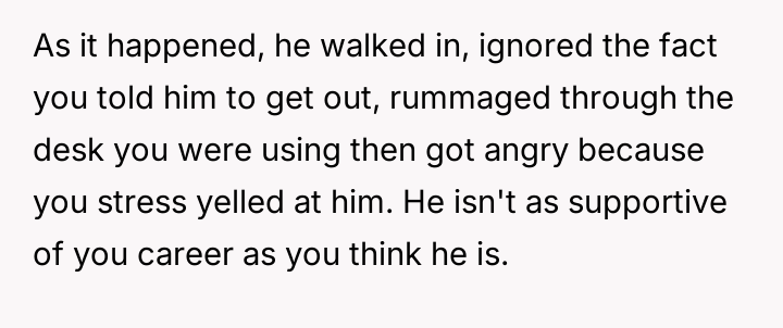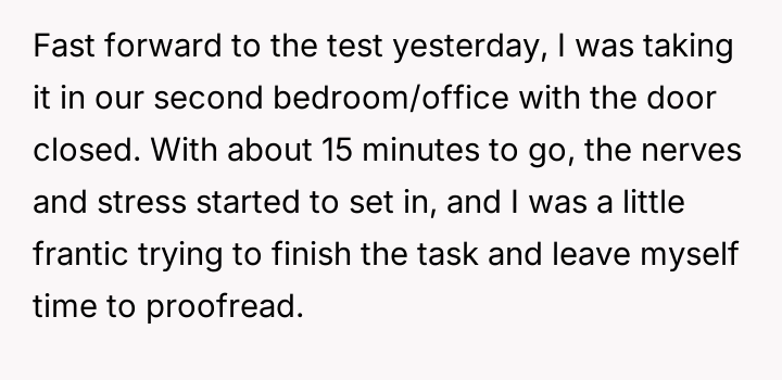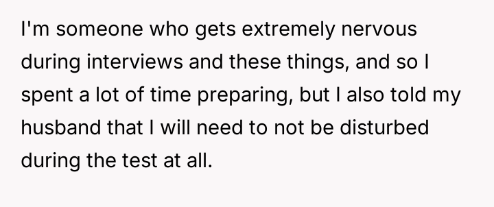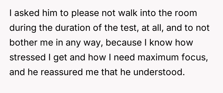 AITA for shouting at my husband when he came into the room during a timed test?