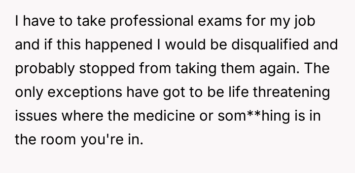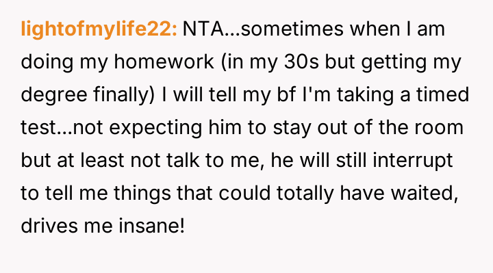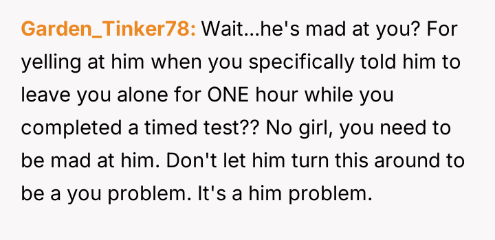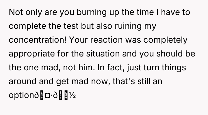 Was the OP justified in their explosive reaction to protect their necessary concentration during the timed test, or did the husband's minor intrusion not warrant such an intense outburst?