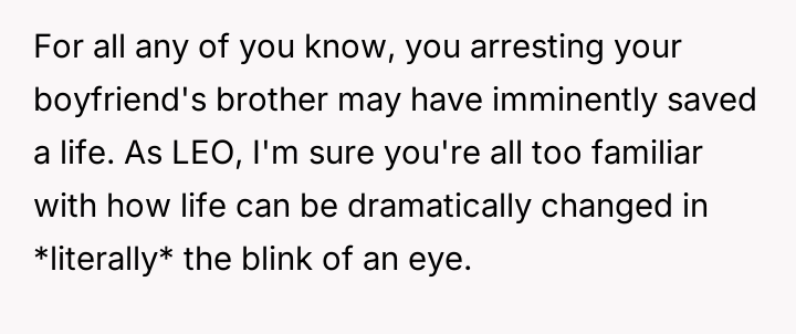 AITAH for arresting my boyfriend's brother during a traffic stop?