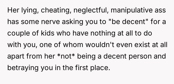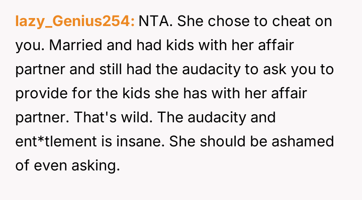The debate centers on whether the OP was justified in his blunt refusal and sharp comments when asked to financially support his ex-wife's other children, considering the history of a**se against his son.