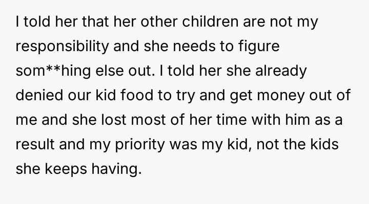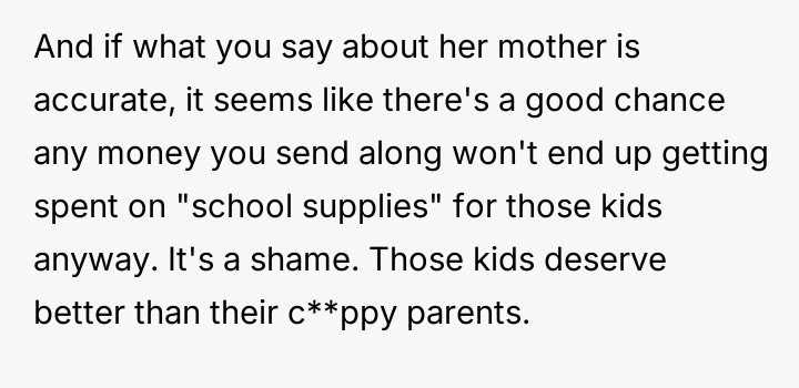 AITA for saying it's not my problem if my ex and her husband can't afford their kids?