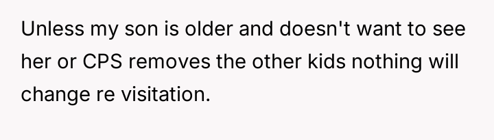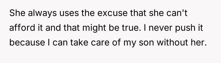 The original poster (OP) is currently in a firm position, prioritizing the well-being of his son above all else, especially given his ex-wife's past history of financial manipulation and neglect toward their child.