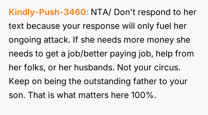 Should the OP maintain absolute financial separation and ignore the pleas, or does the shared history and the nature of the request warrant a more diplomatic, albeit still non-committal, response to maintain minimal co-parenting civility?