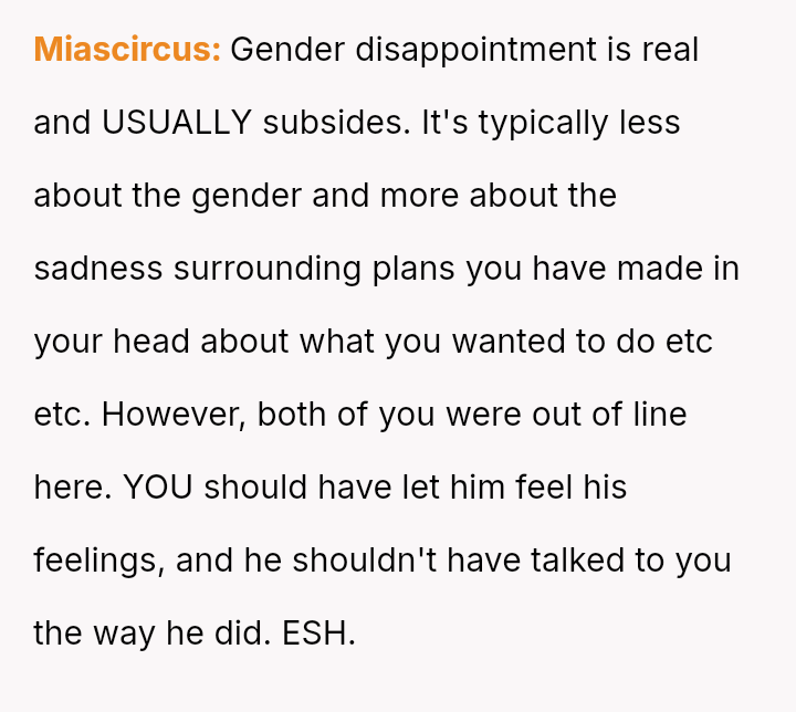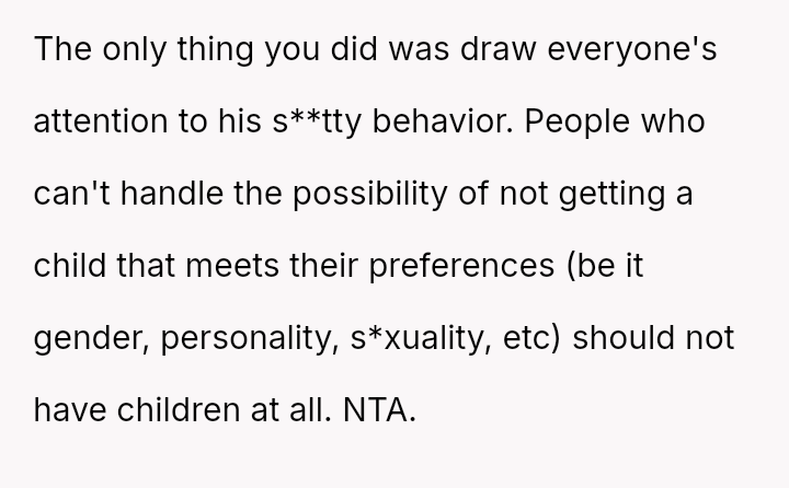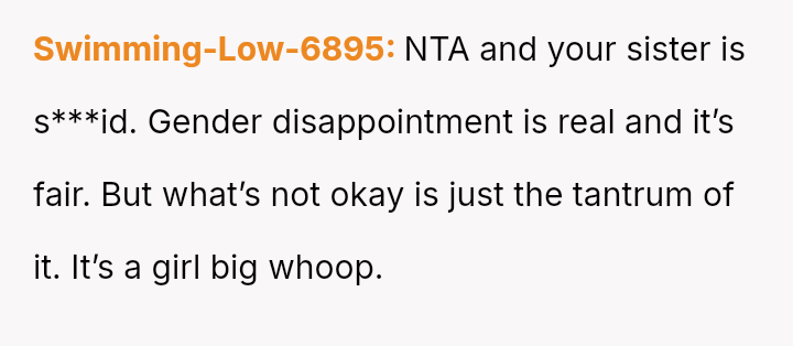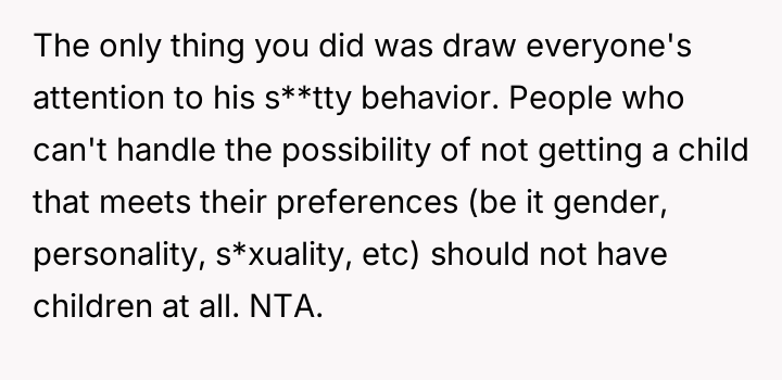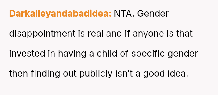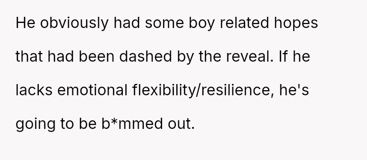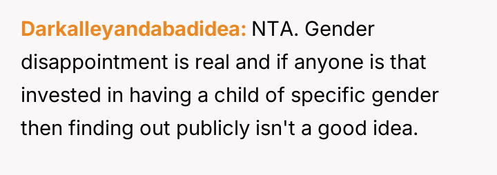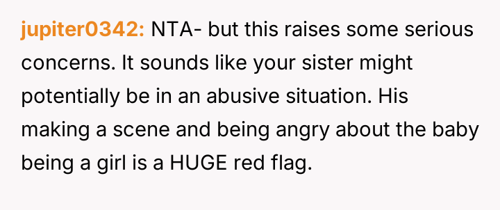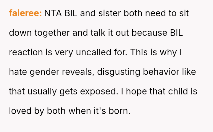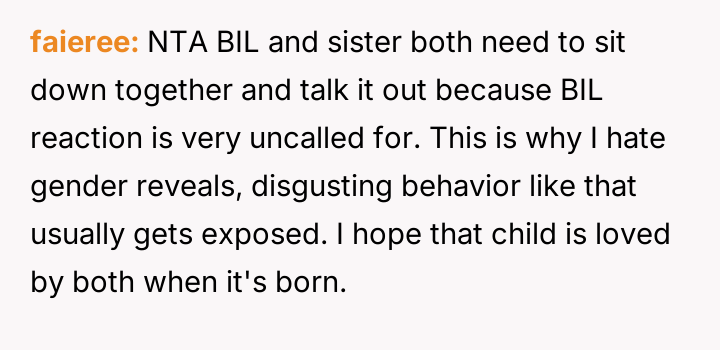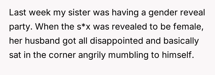 The original poster (OP) felt compelled to intervene when their brother-in-law displayed extreme disappointment and disruptive behavior following the announcement of a female baby gender reveal.