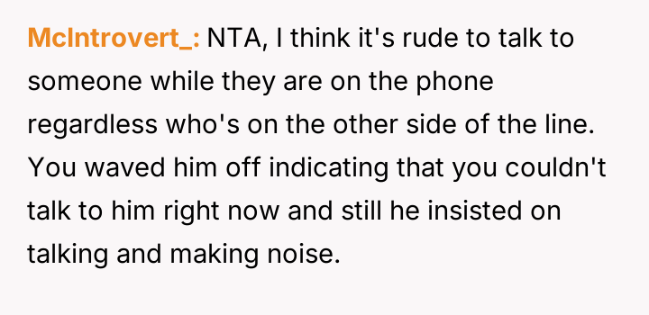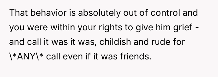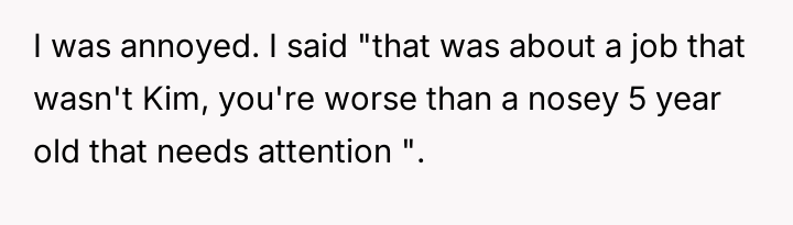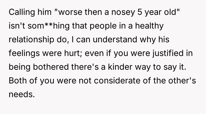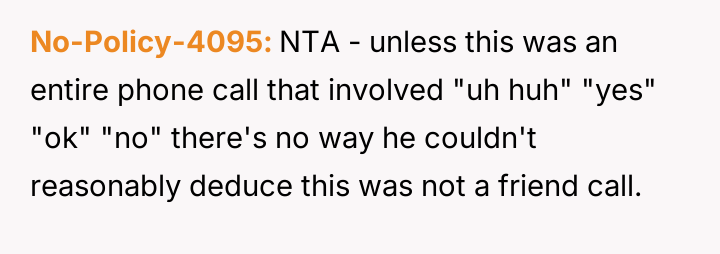 Ian, conversely, felt slighted by the OP's sharp reaction and believed his simple curiosity about who she was speaking with was being unfairly dismissed.