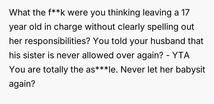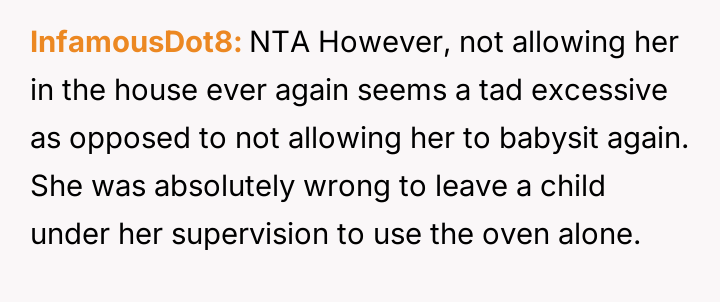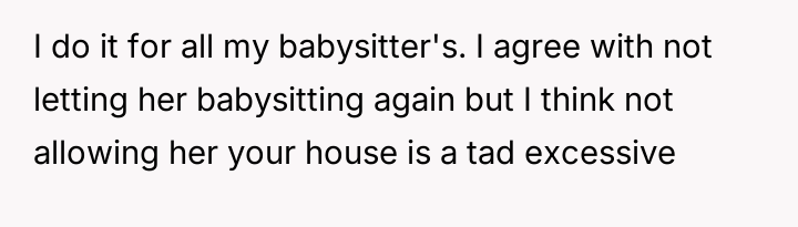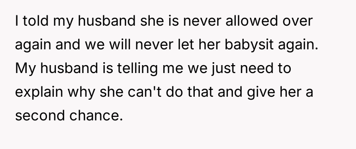 The OP is understandably reacting with intense anger and has decided to permanently ban the babysitter, creating a conflict with the husband who suggests counseling and a second chance.