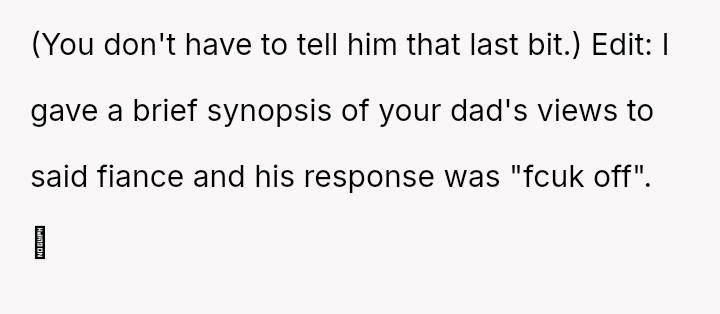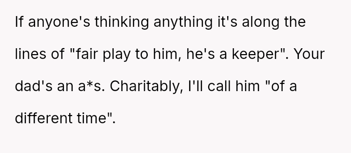 The central conflict lies between the OP's supportive act of partnership and his father's rigid, traditional definition of masculinity.