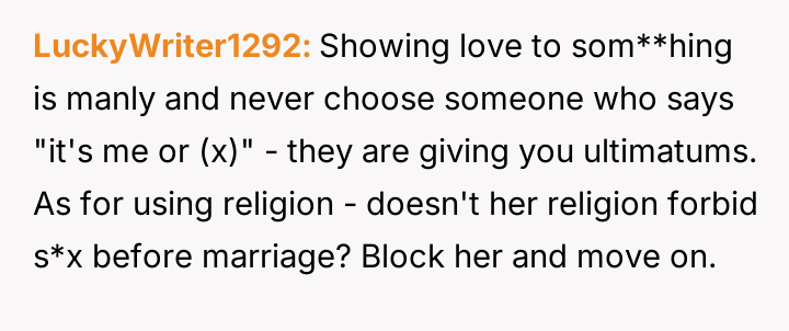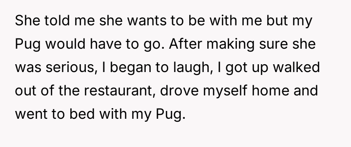 The original poster (OP) faced an ultimatum: maintain their relationship or keep their beloved pet pug, stemming from a conflict between their es**blished life (including their dog) and the new partner's religious and cultural views regarding dogs as unclean.