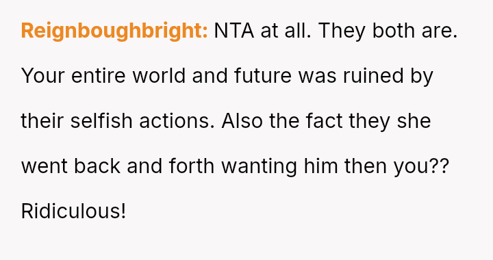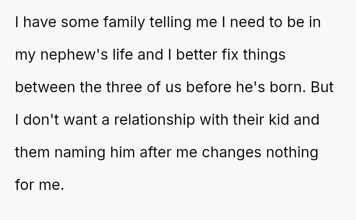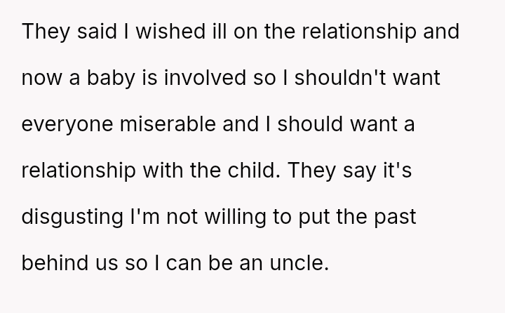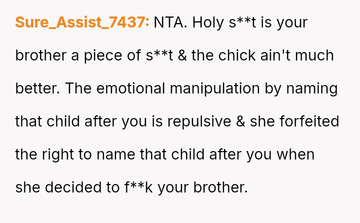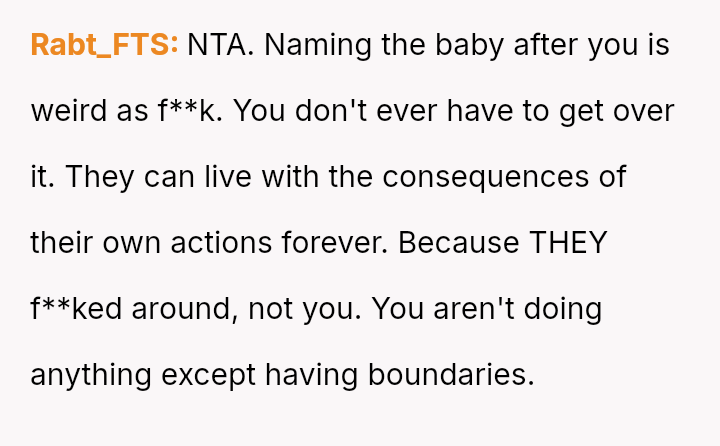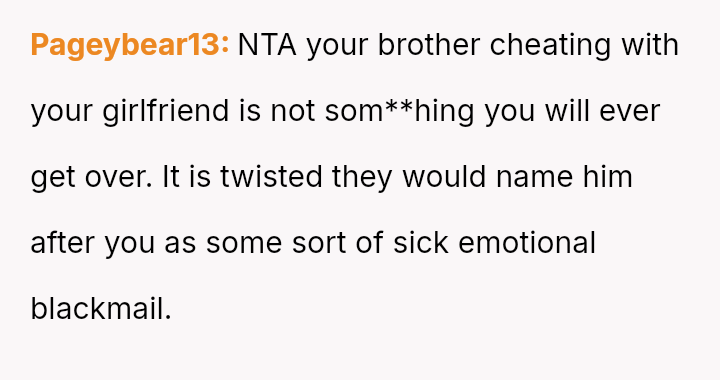 Given that the family is pressuring the OP to accept the relationship and welcome a new child named after him despite the deep betrayal, the core question remains: Should the OP allow family obligation and the existence of a new baby to force him to reconnect with the individuals who caused him significant emotional damage, or is maintaining zero contact the only appropriate way to honor his own emotional reality and past pain?