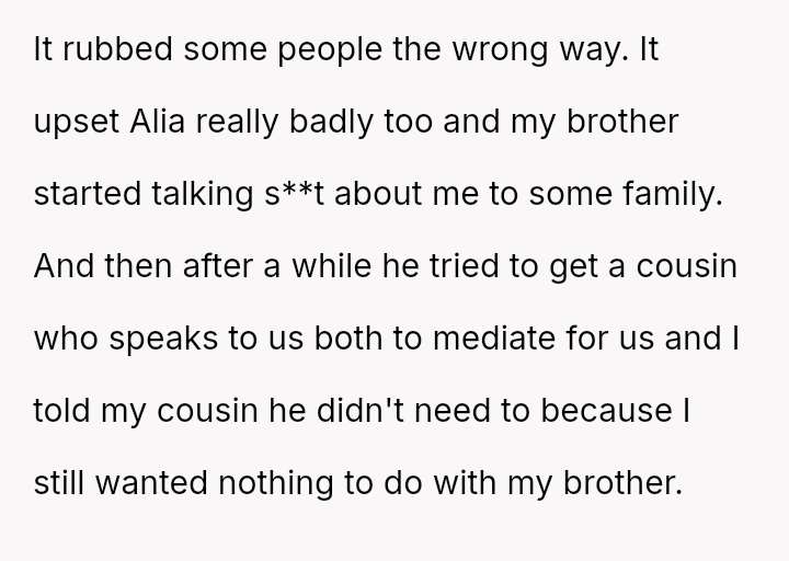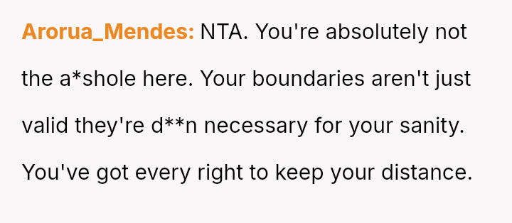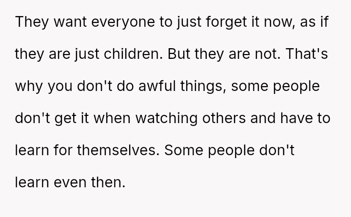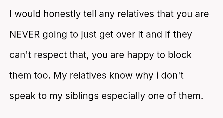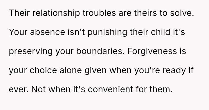 Despite months pa*sing, the OP maintains a firm boundary of no contact with both individuals, which is causing significant friction within his extended family.