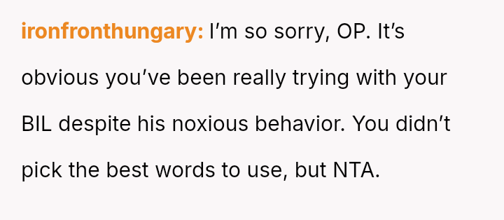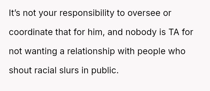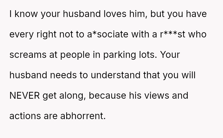 The original poster (OP) found herself in an emotionally distressing situation, forced to choose between maintaining peace with her supportive in-laws and protecting her own moral standards against her brother-in-law's severe racism.